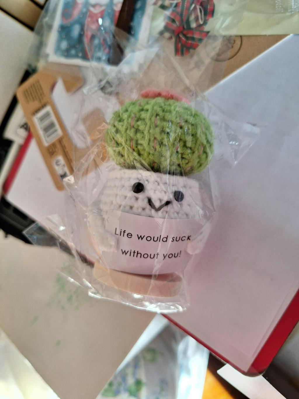The Handmade Life Would Suck Without You Succulent Cactus is here to lend a comforting embrace whenever you need it. With its soft, hand-knitted design and endearing smile, this cactus is more than just a plush toy; it's a source of comfort, a reminder that you're never alone. Whether it's a tough day or a moment of joy, Life Would Suck Without You Succulent Cactus is ready to be your loyal companion through it all.